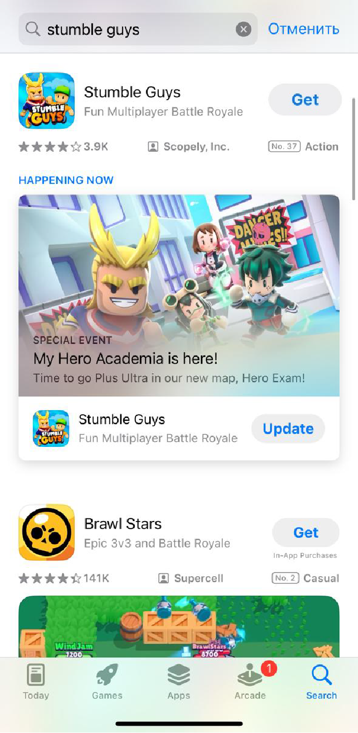 После смены страны игра должна появится в App Store. Нажимаем скачать (Get)